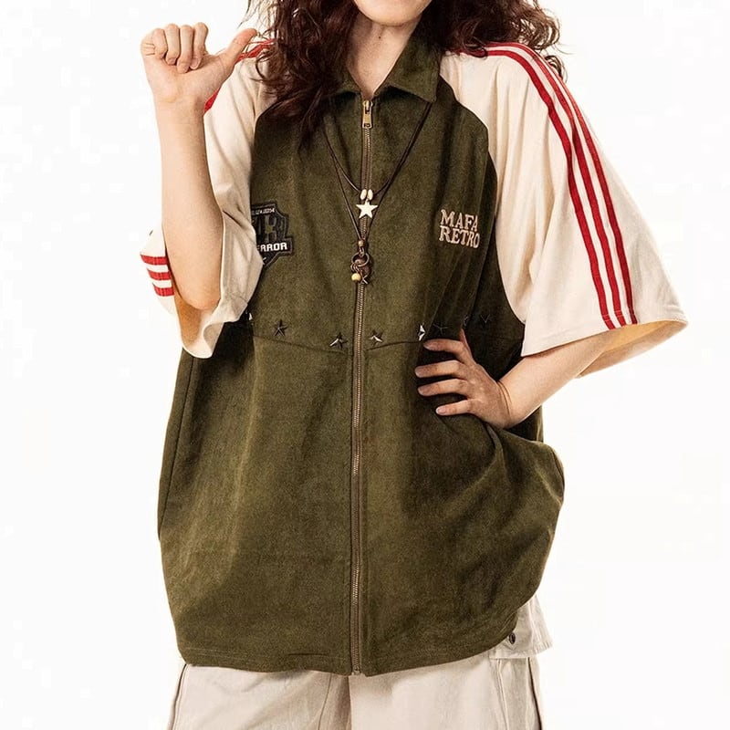 Zip-Up Short Sleeve Oversized Shirt ◇2color M0022