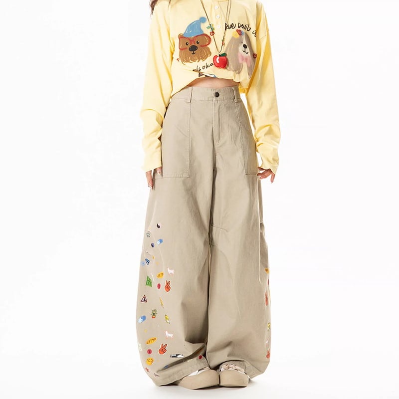 Patch Pocket Wide Leg Full Length Pants ◇2color M0105