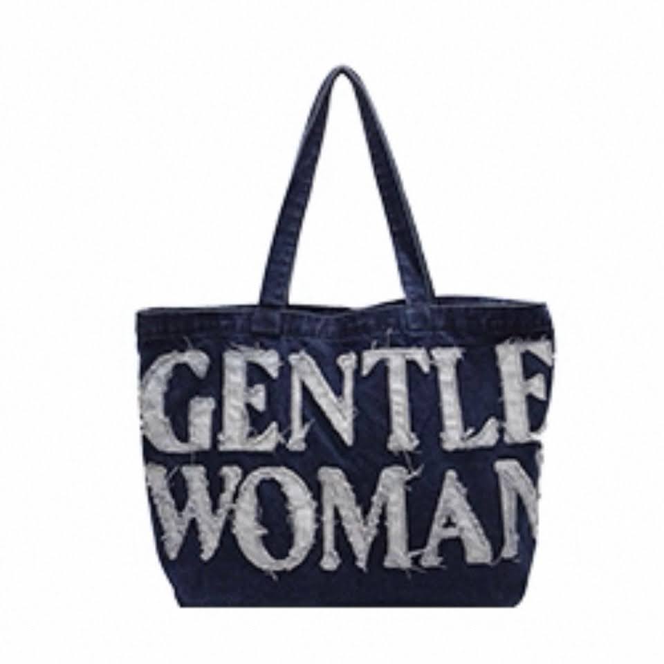 デニム素材に、存在感のあるレターデザインが目を惹くトートバッグ。