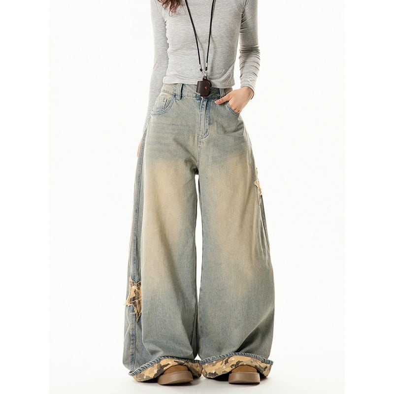 ゆったりとしたワイドシルエットが特徴的なデニムパンツです。